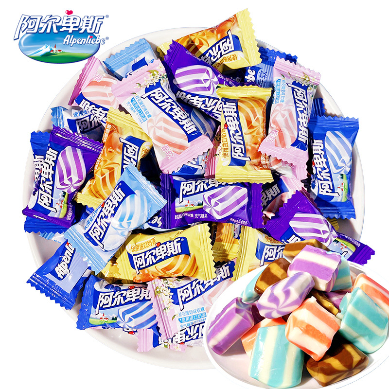 アルパインソフトトフィーフルーツミルク味グミバルクウェディングキャンディマルチフレーバーミックスカジュアルキャンディ