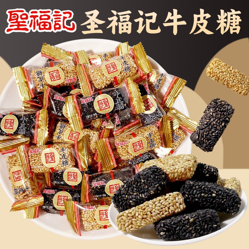 Shengfuji 牛革キャンディ 黒ごまキャンディ 8090 ノスタルジックな昔ながらのごまグミ バルク新年キャンディ スナック
