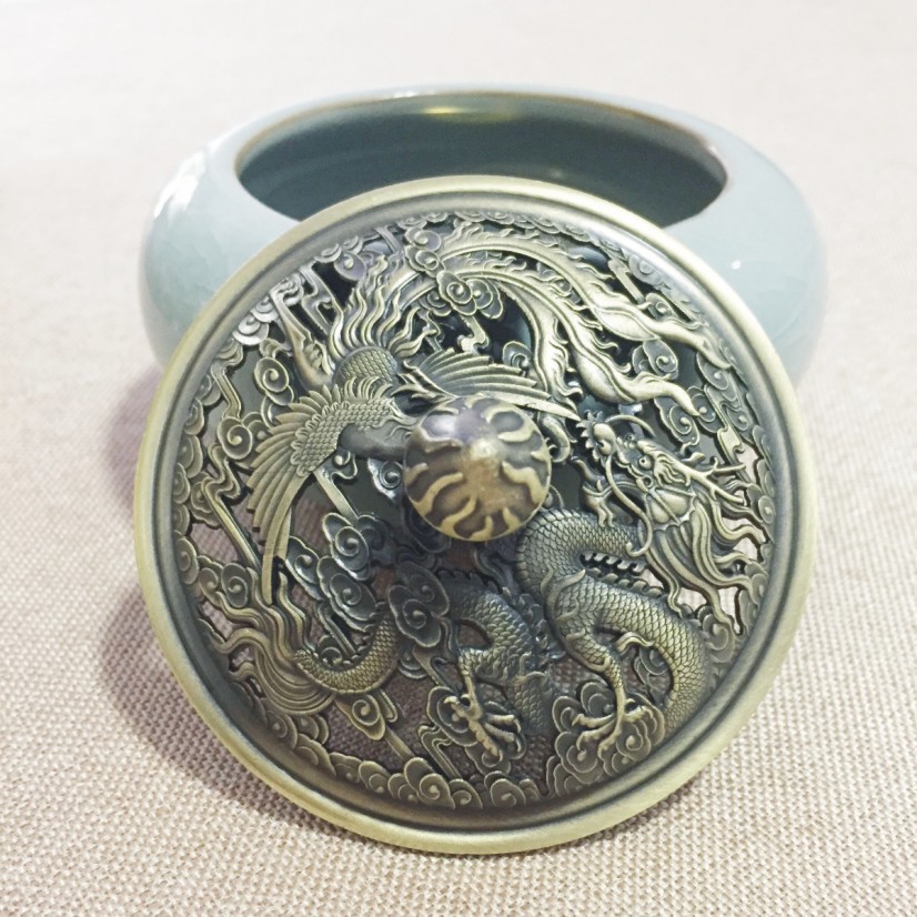 9cm龍鳳呈祥艾草薫炉香灰トレー艾条ベース艾灸トレー家庭用縦型線香檀
