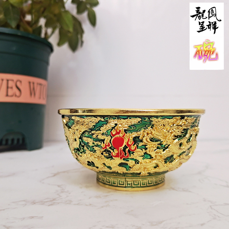 メーカーの卸売りの金属はエナメルの竜鳳の碗をまねて、双竜の玉の竜騰の盛世の金の碗の装飾品の風水の置物