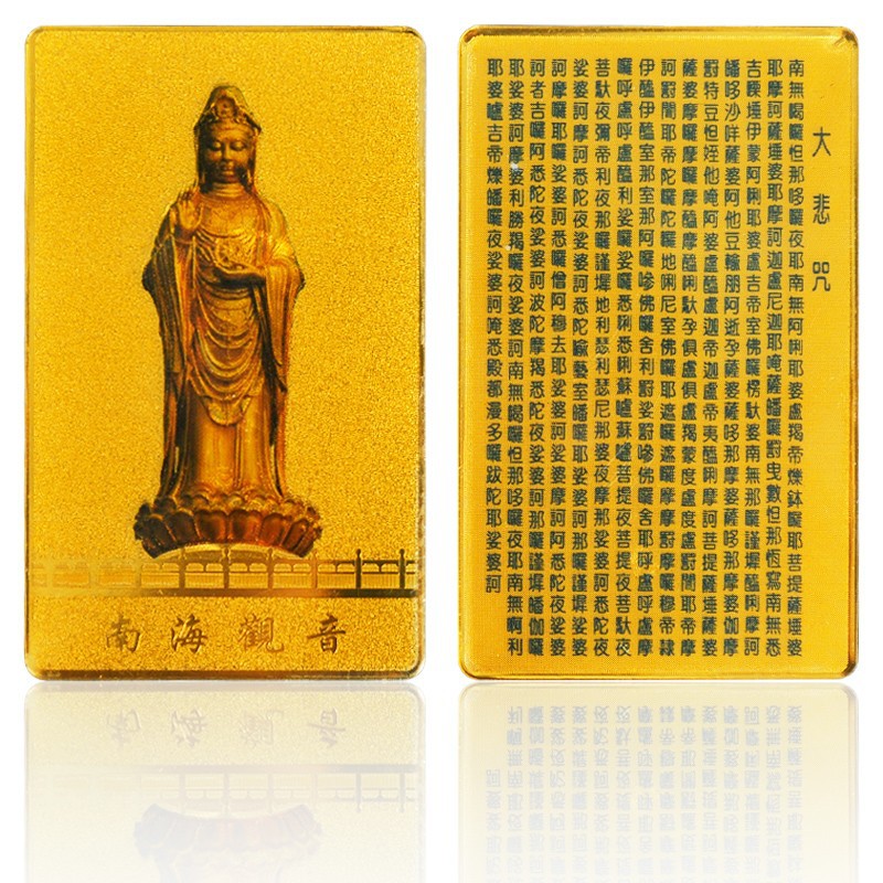 黄銅プレトリア山南海観音保護身金カード観音菩薩金属仏カード平安保護カード金カード