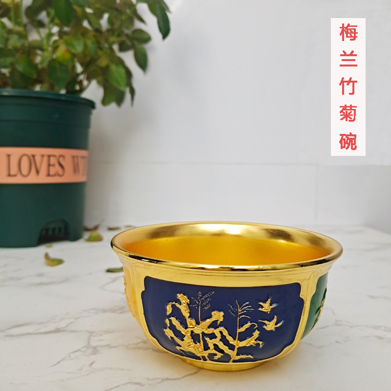 骨董雑種コレクション梅蘭竹菊碗合金碗創意置物新商品エナメル彩聚宝盆