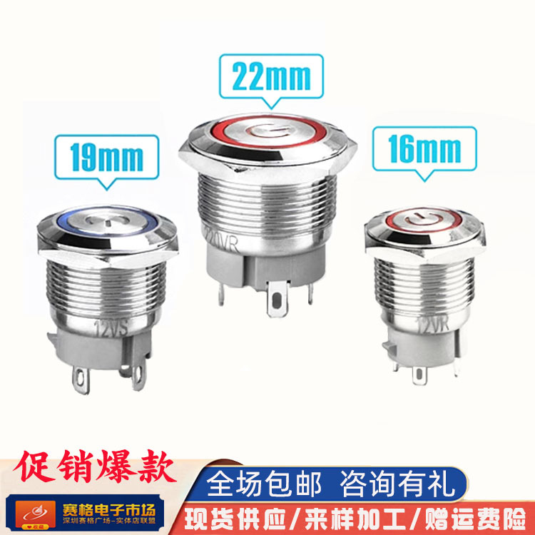 特価販売促進灯付き金属スイッチ16/19/22mm10a大電流短押しボタンスイッチ防水スイッチ