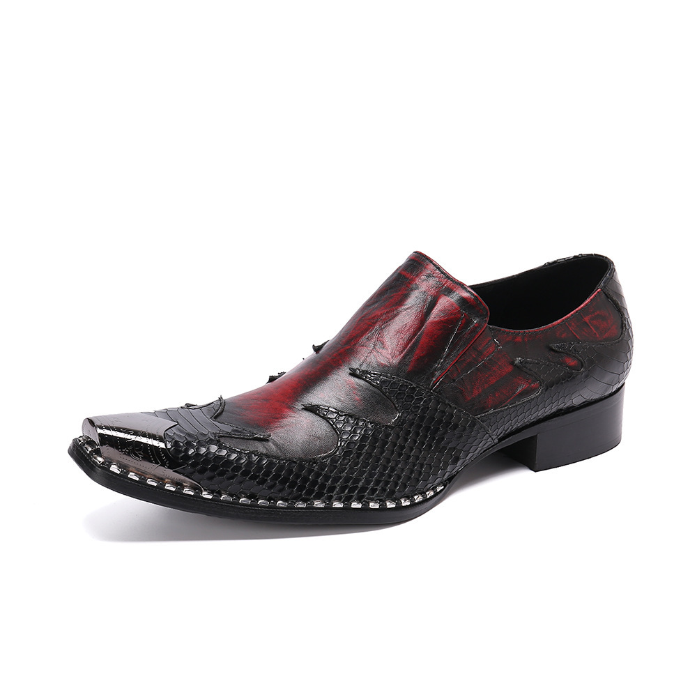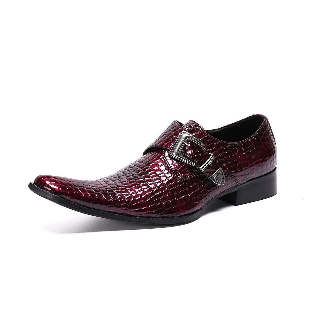 ビジネス正装男性靴本革角頭低靴バックルファッション男性靴英倫風赤いファッション靴