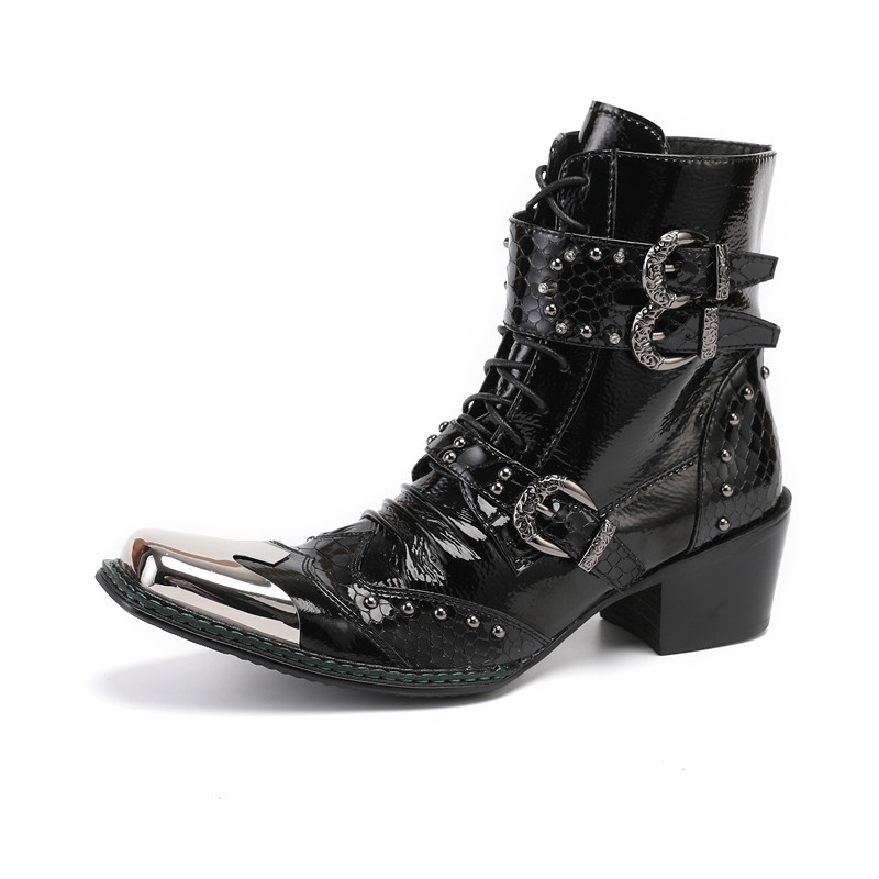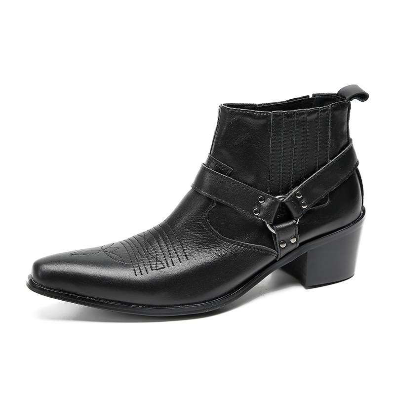 チェルシーブーツ男性欧米春夏ファッション個性的な先端英倫快適黒色中筒カウボーイブーツマーティンブーツ潮