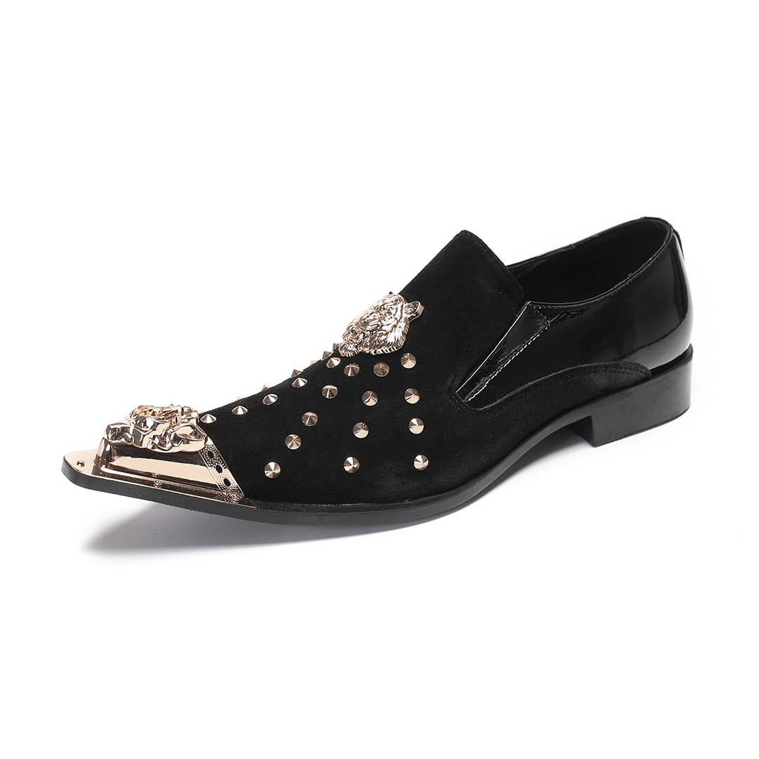 革靴男性2024新ファッション豆靴ビジネスカジュアル靴牛革パンク水ドリル足付き怠け者靴