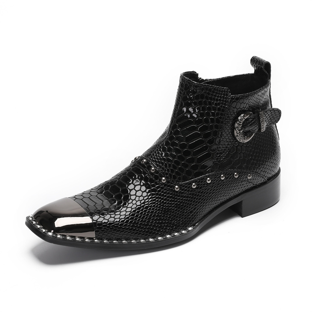 秋の片皮通気性マーティンブーツ男牛革ショートブーツ機関車ブーツ男英倫工装靴カウボーイブーツ中高靴
