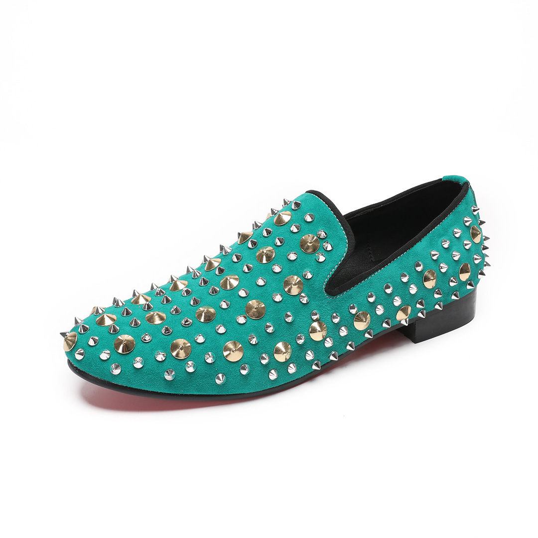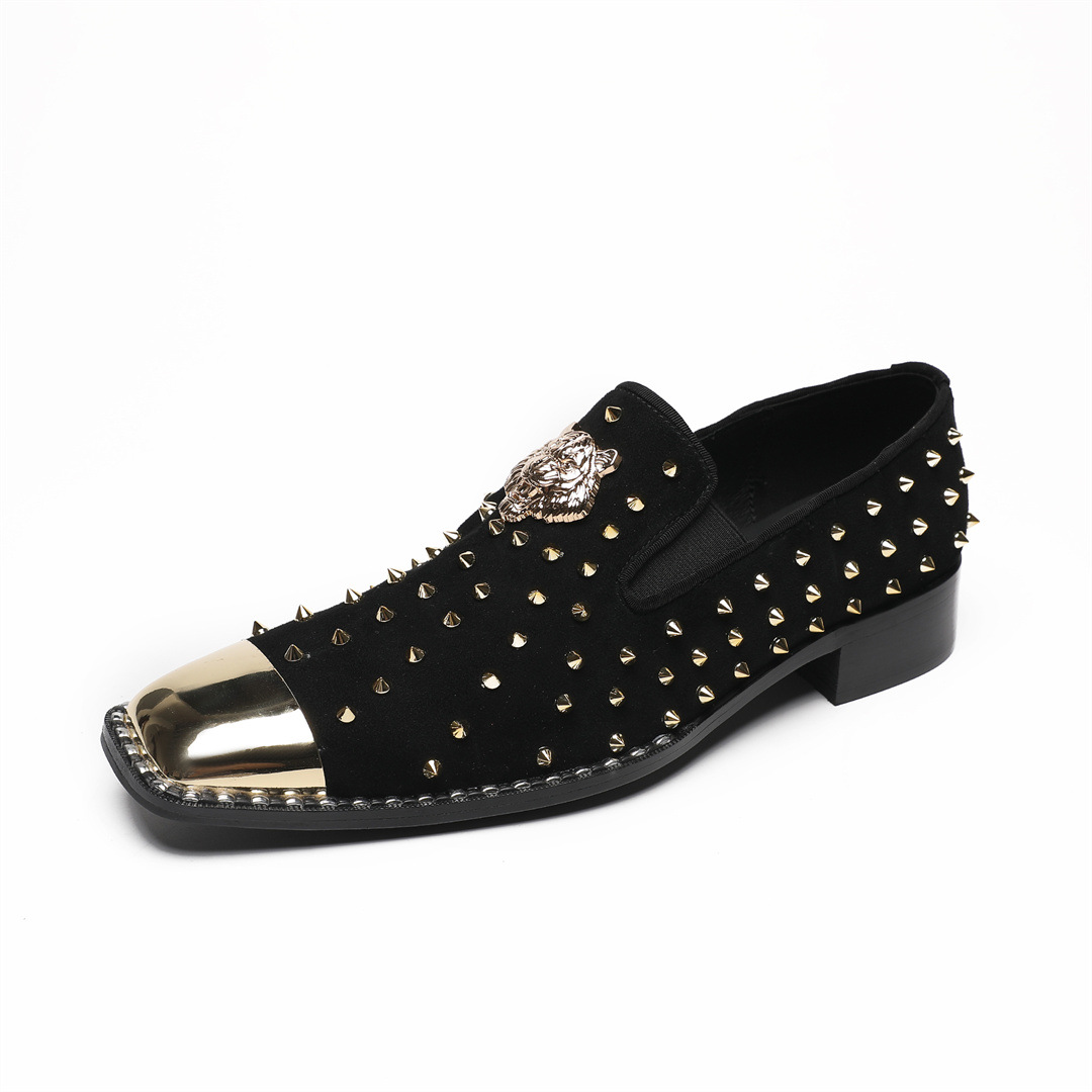 新商品の男性カジュアルリベット靴ブランドの一足漕ぎドリル楽福靴精神的な若者のファッション通気性男性板靴