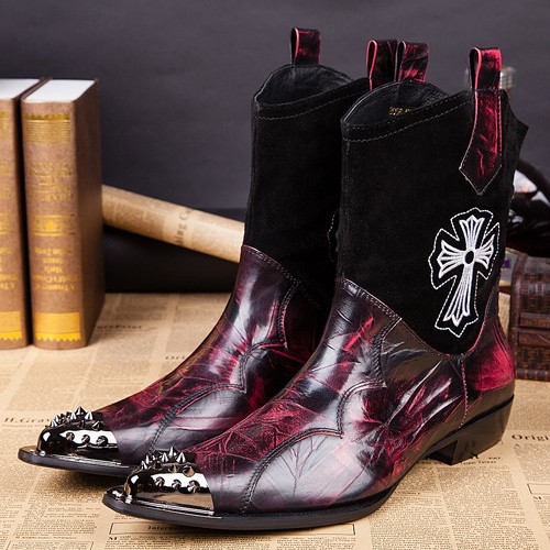 先のとがった牛革の潮流の男性の皮の靴の個性のt台のショーのマーティンの男性の靴の彫刻の欧米のカウボーイの靴の韓国版のショートブーツ