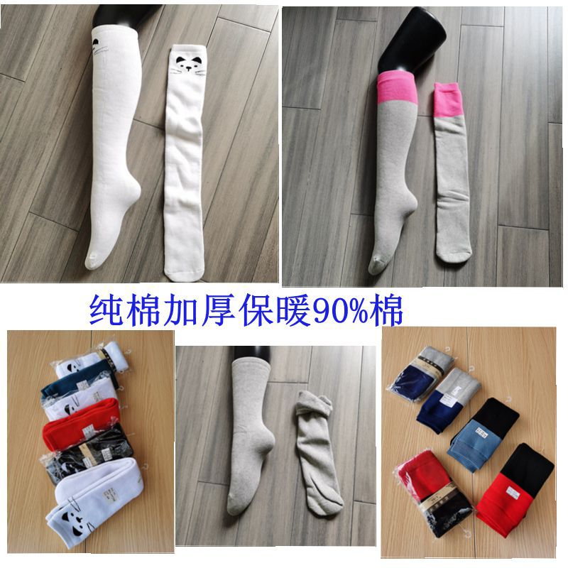 新しい秋冬の日韓の積み重ねの靴下は保温してすねの靴下の男女の防寒の高い筒の純綿の膝のストッキングを着て厚くなります。