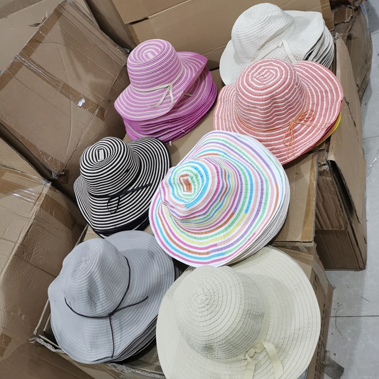 露店フェア夏の涼しい帽子の女性は、麦わら帽子の日焼け止め帽子の夏の日よけ帽子の女性の雑用帽子に沿っている