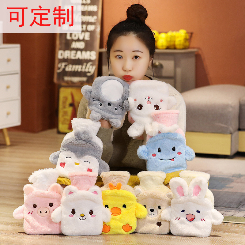 新型のかわいいぬいぐるみの布カバーの注水湯たんぽの水を流して手を温めます。