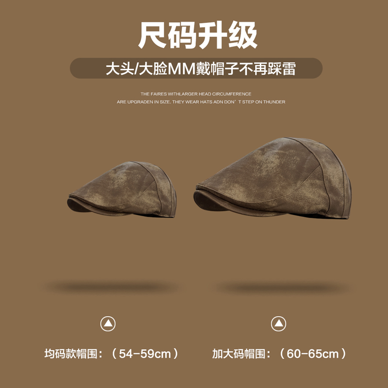 大頭囲前進帽2025新型PU皮質ベレー帽豹紋秋冬画家新聞童帽大サイズ