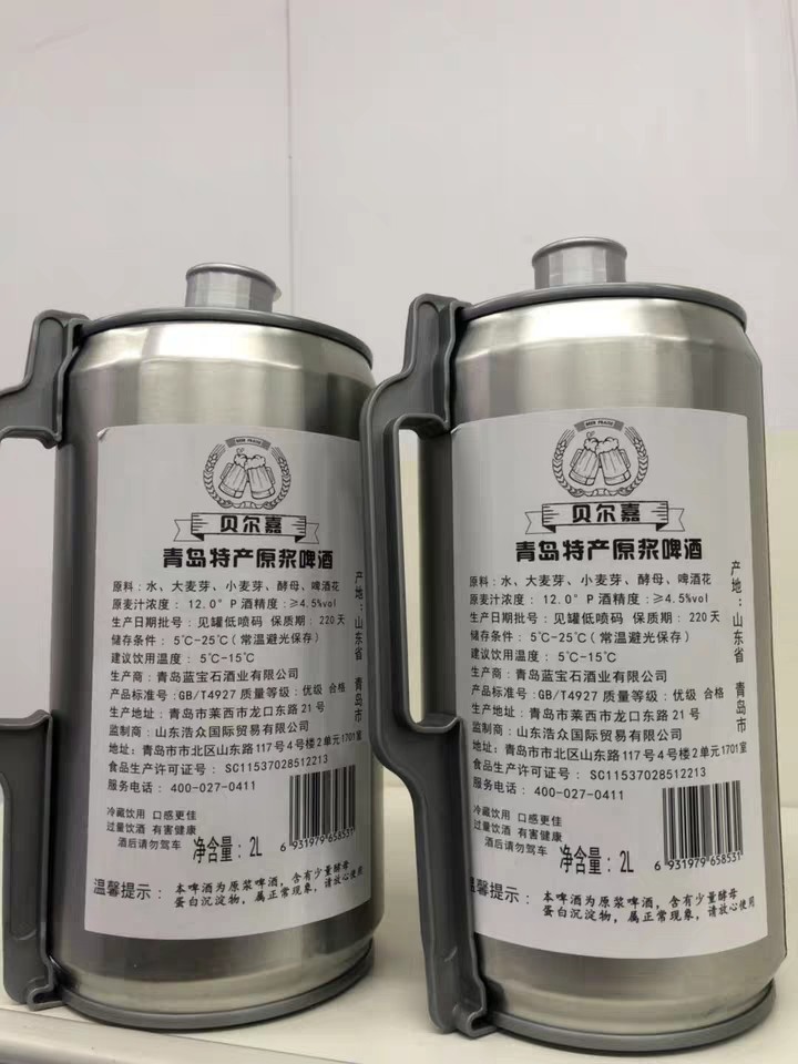 青島ベル嘉原パルプビール2リットルバケツ入り高さ高さ麦汁度