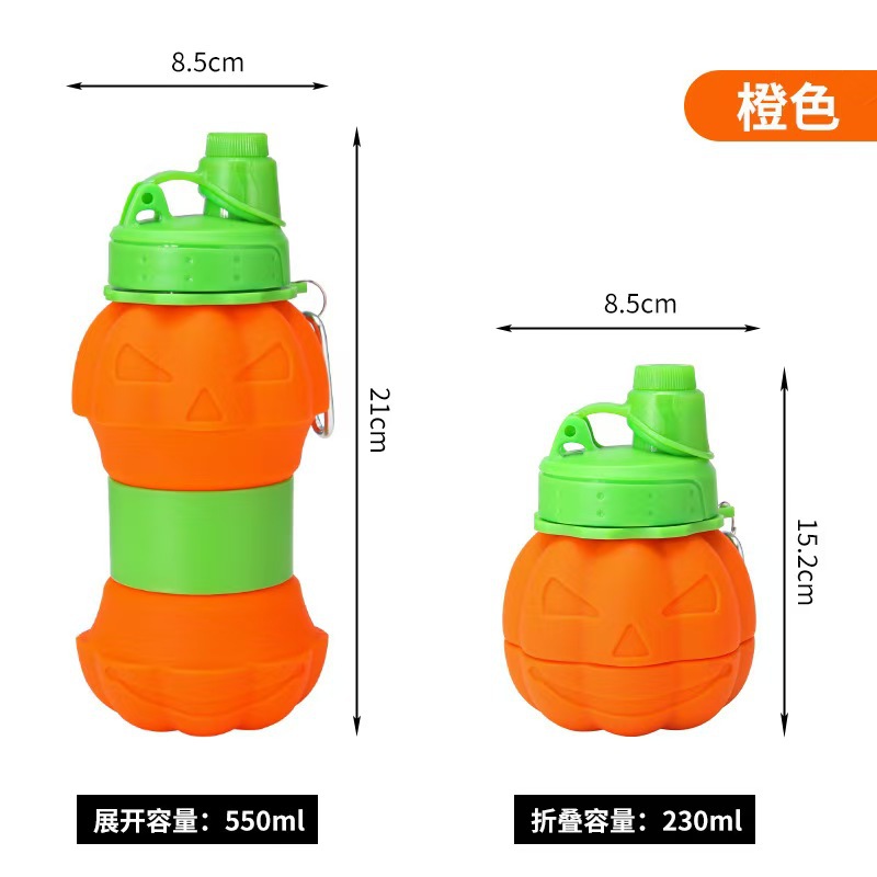 新型ハロウィーン屋外シリコン折り畳みカップ運動水筒国境を越えた創造的なカボチャ伸縮携帯シリコンカップ