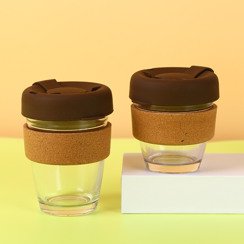 メーカー直販コルクセットガラスコーヒーカップ滑り止め防止ガラスカップ350mlオフィス飲料水カップ