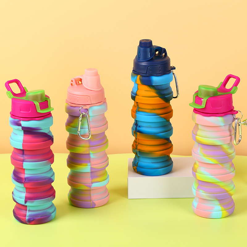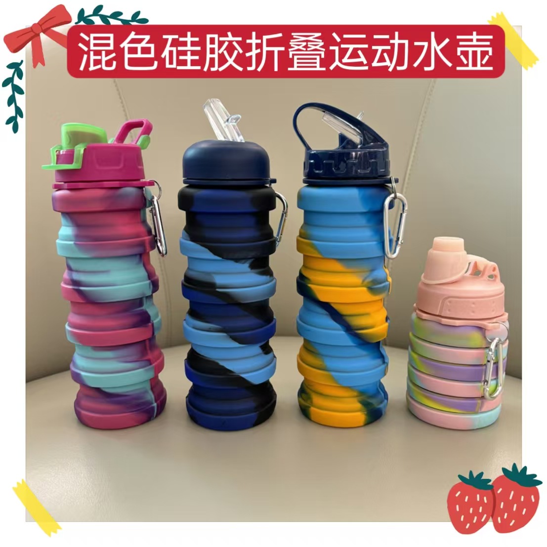 メーカー直販運動シリカゲル折り畳みカップ食品級プラチナwater bo不動屋外混色伸縮カップ