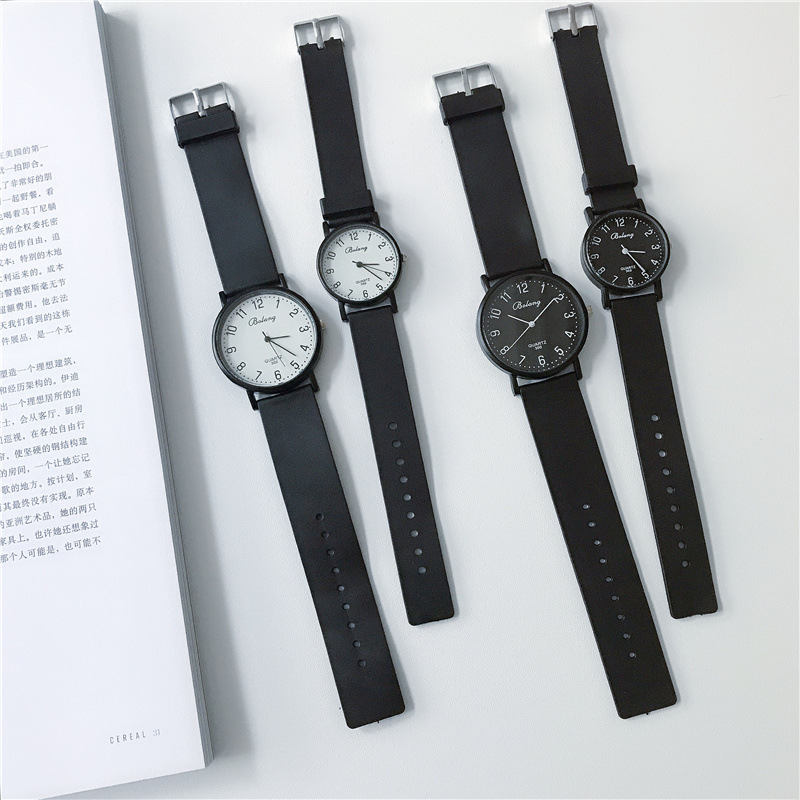 カップルの腕時計の男性と女性の大学入試の腕時計の男女の中学生の韓国版の石英の小さい白黒の時計