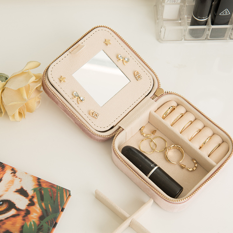 Ins風ベルベット携帯真珠ネックレスジュエリー収納ケース指輪耳飾り旅行アクセサリーケース卸売り加工