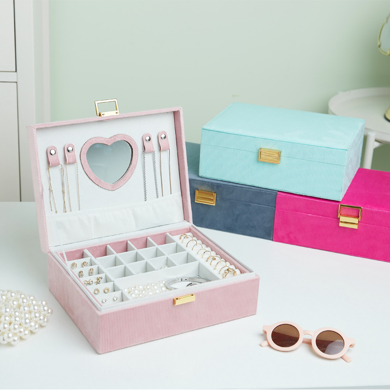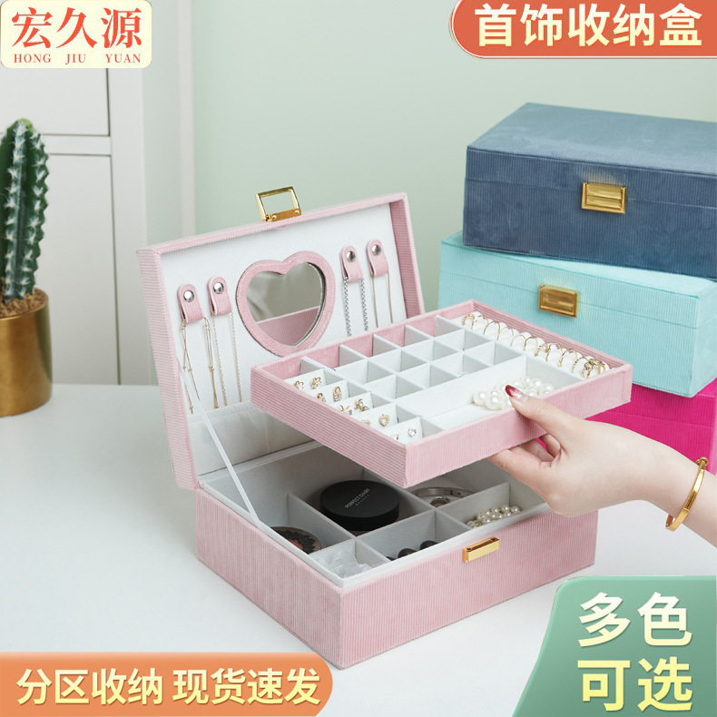 卸売アクセサリー大容量女の子ジュエリーボックス多機能ベルベットレトロジュエリーピアスネックレス収納ボックス