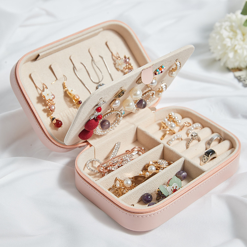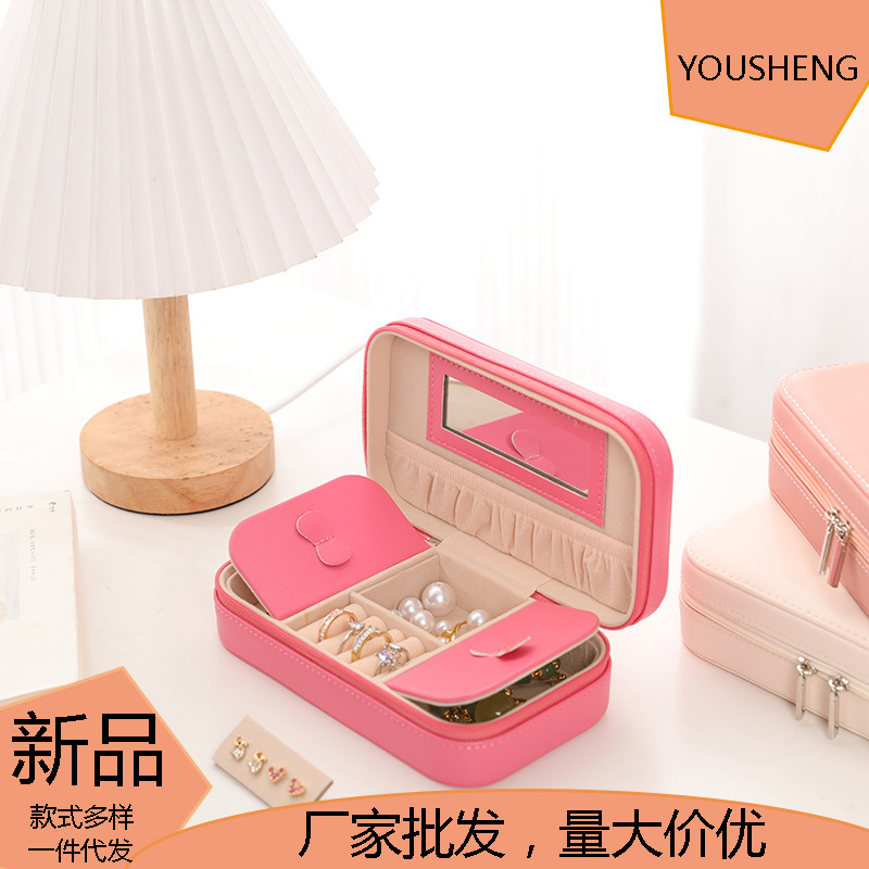 卸売りジュエリー収納ケース家庭用ミニピンクのジュエリーケース女子旅行単層ジュエリーリングケース現物