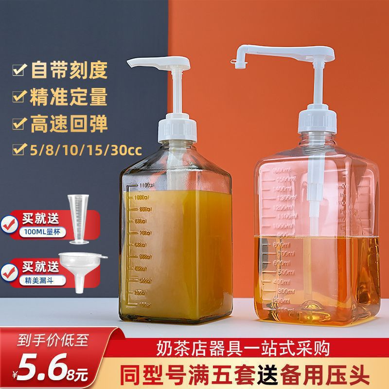 シロップ絞りボトル、ミルクティーショップ用ガラス製砂糖絞りボトル、ハンドプレスヘッド、フルクトース定量プレスボトル、ジュースプレス