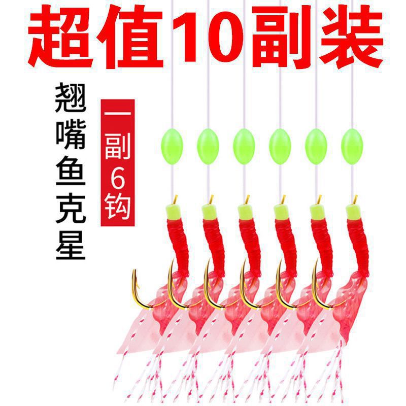 白い縞模様の魚の皮のバイオニックフック釣りセット、赤い皮の光沢のある魚の釣り針、ルアー餌、金丸世エビの皮の釣り針