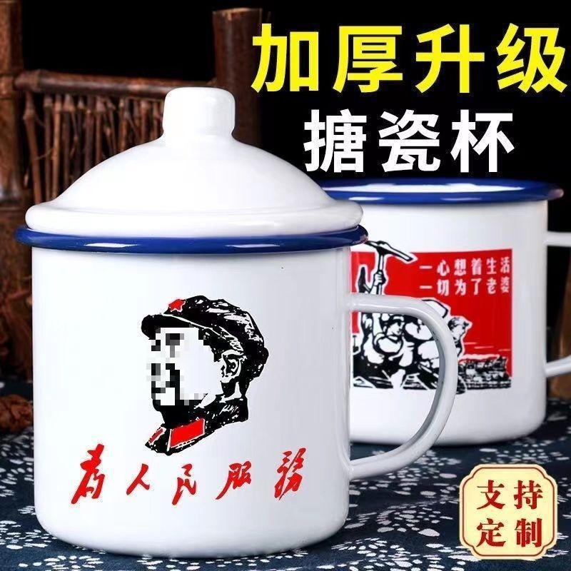 エナメルカップ、ノスタルジックな蓋付きマグカップ、大容量ウォーターカップ、男の子用昔ながらのティージャー、古典的な古い幹部茶
