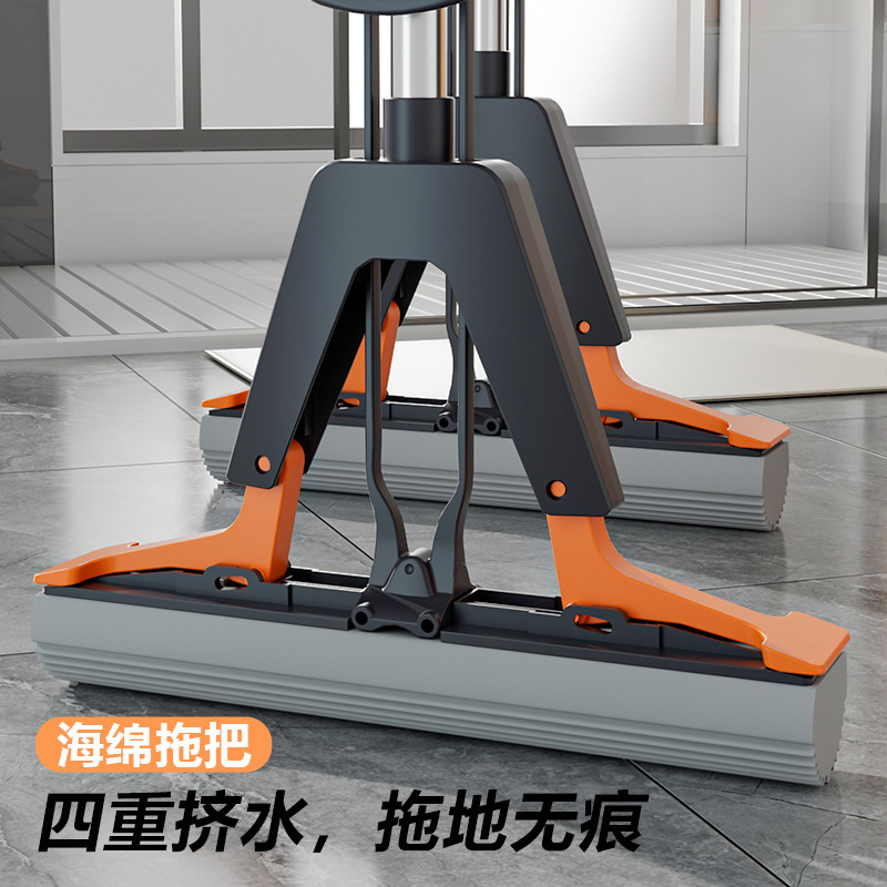 怠け者のためのハンズフリースポンジモップ、家庭用ワンモップ、新しいバスルーム吸収性折りたたみコロイドモップ