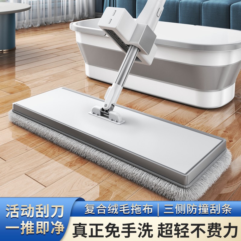 家庭用フラットモップ、1本のモップ、厚いロッド、手洗い不要、大面積モップ、乾湿両用