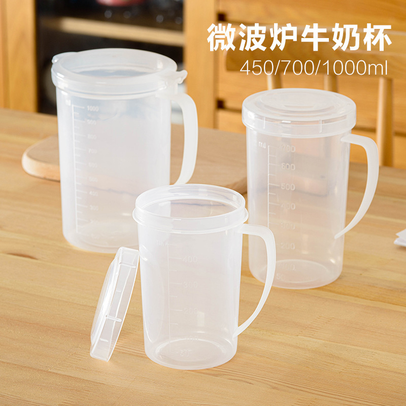 粉ミルク付き目盛り付きドリンクカップ、電子レンジ対応朝食カップハンドル、ミルクカップ、ミルクカップ、蓋付き加熱プラスチック、送料無料