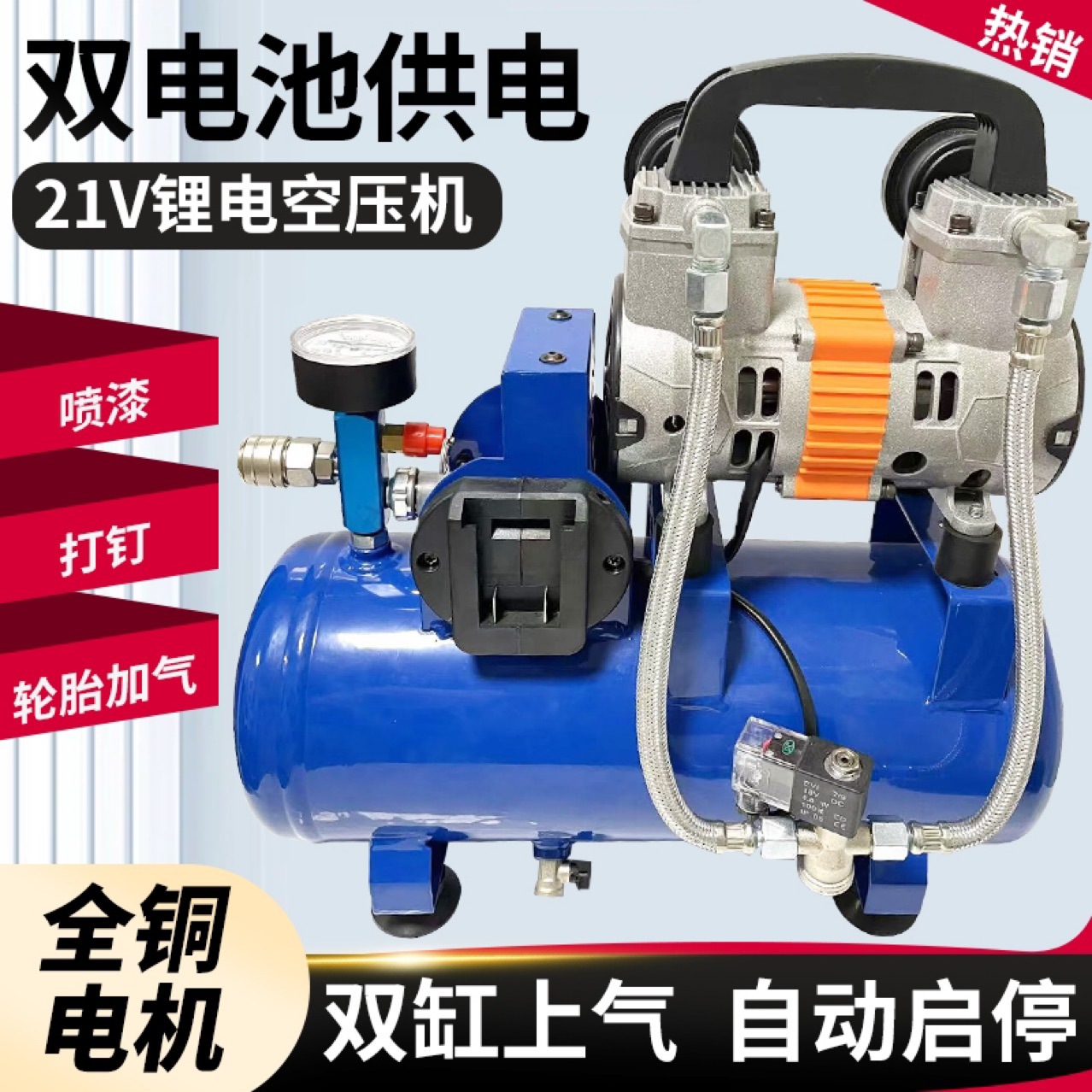 二重電池二重シリンダ小型リチウム電気エアコンプレッサ携帯式エアポンプ無線屋外車載タイヤ加圧ポンプ