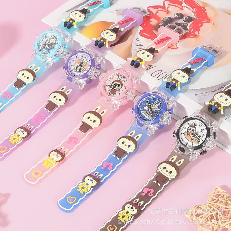 ホットセールラブブ発光漫画時計 3D 立体シリコンバンド子供用クォーツ時計クリエイティブ発光卸売クロスボーダー