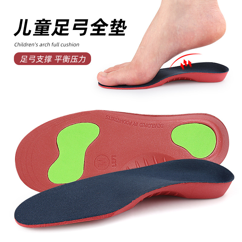完全にパッド入りのインソール、子供用偏平足スポーツサポート、衝撃吸収、インナーおよびアウターXO足と脚のベビータイプ