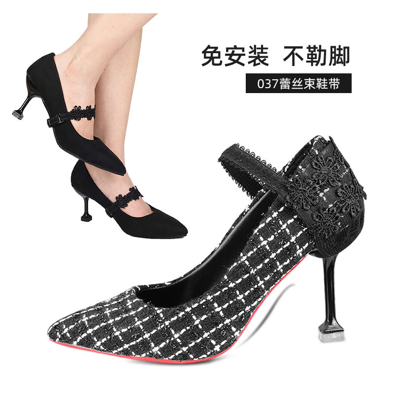 靴ひも、セクシーなヒール、伸縮性のあるヒール、固定されたハイヒール、ポータブルレース、取り付け不要、足の怠惰な人向けの落下防止