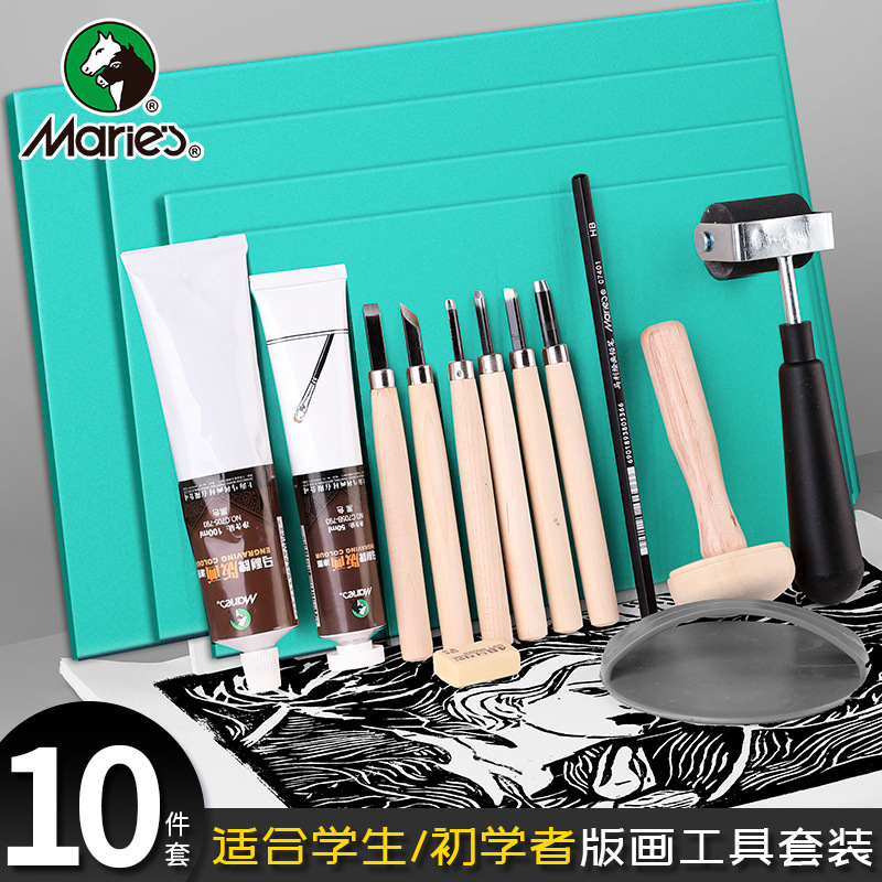 マーリー版画ツールセット、両面版画材料のフルセット、軟質ゴムインク彫刻ナイフ、美術学生ボード絵画木版画