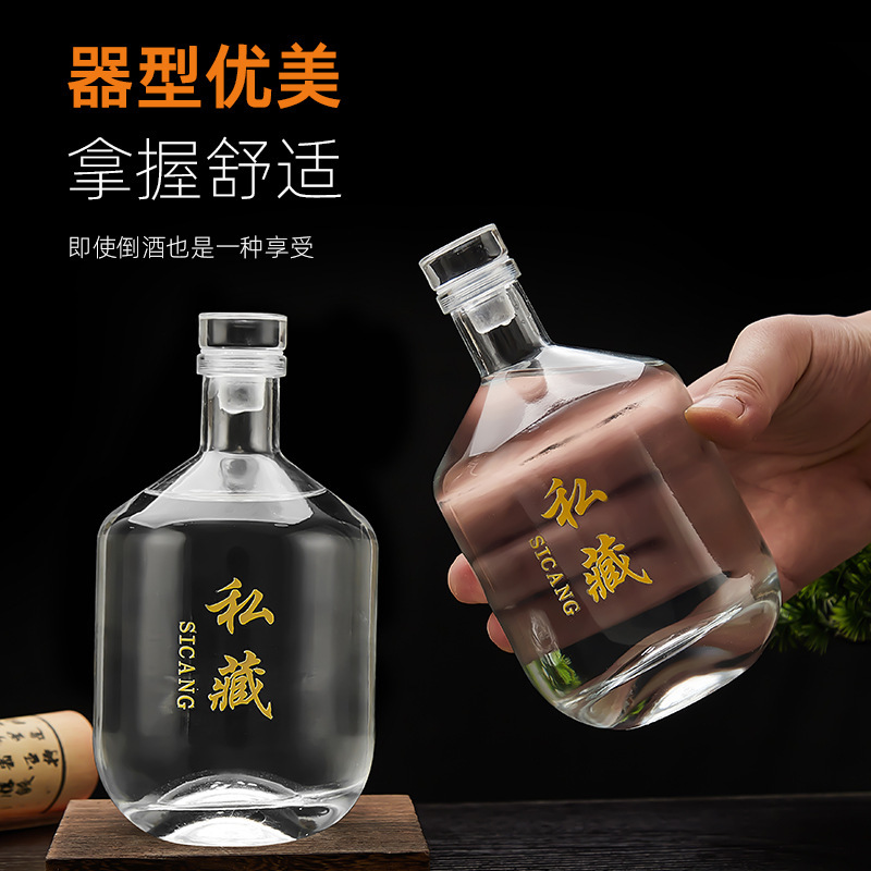 白瓶500ml凹底透明ガラス白瓶家庭用500ml 1斤入り自酒瓶セット