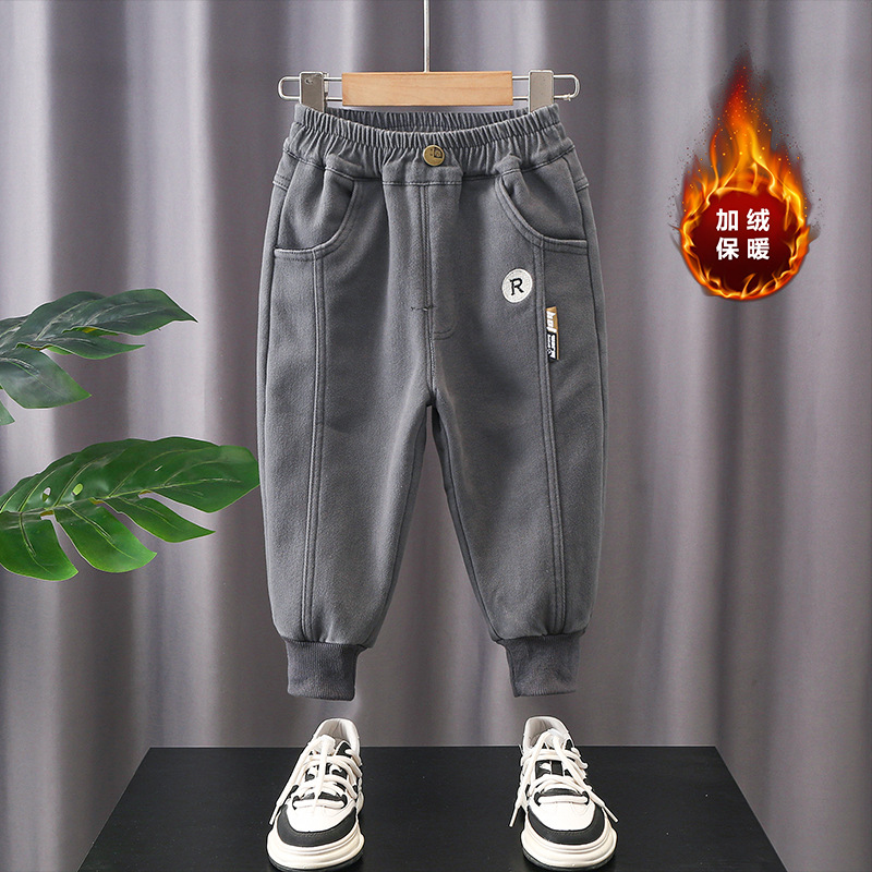 男の子用純綿パンツ 秋冬新作 中小児用冬服 裏起毛パンツ オールインワン裏起毛ロングパンツ 柔らかく快適で防寒性あり