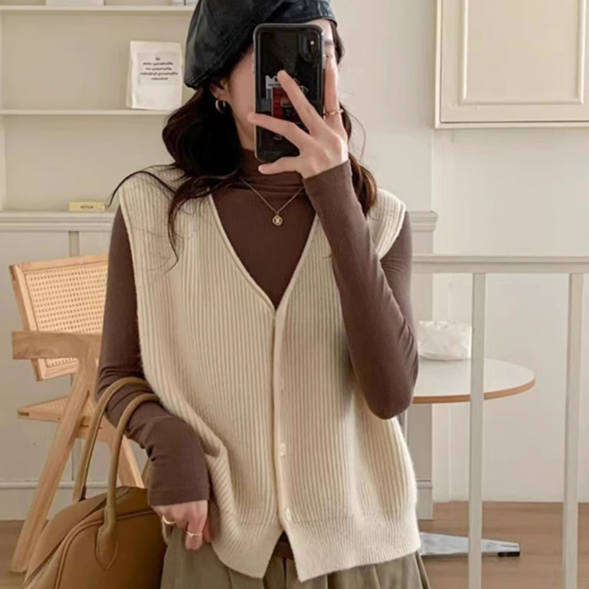 秋のカーディガンの女性のセーターのニットのベストの女性の金の2024の新型の春と秋のベストのベストのベストの馬はシャツを挟んで重ねて着ます。