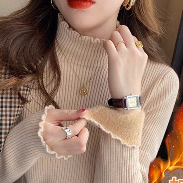 半高襟一体のベルベットのシャツの女性の中に秋冬の新しいベルベットの厚いセーターの洋気木の耳元のニットウェアを着ています