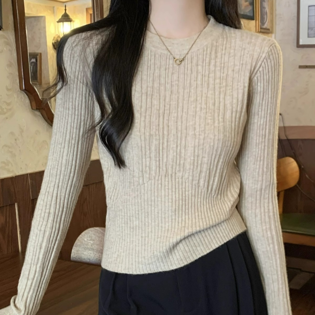 半高襟長袖一体パイル底セーター女子秋冬2024新ネット赤爆金内にニット上着をかける