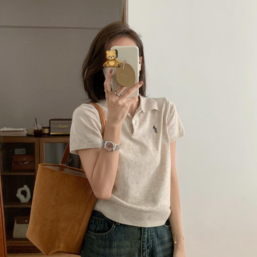 オリジナルpolo襟ニット正肩半袖tシャツ女性夏新作ポニーラフ刺繍半袖シャツ上着