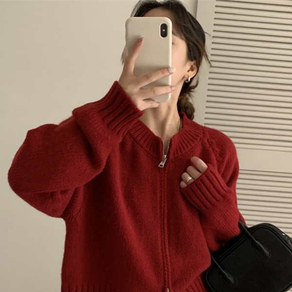 怠惰な風の双ファスナーのセーターのコートの女性の2024秋冬の短いデザイン感の小さい大衆のシンプルな韓系のニットのカーディガン