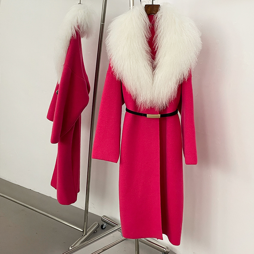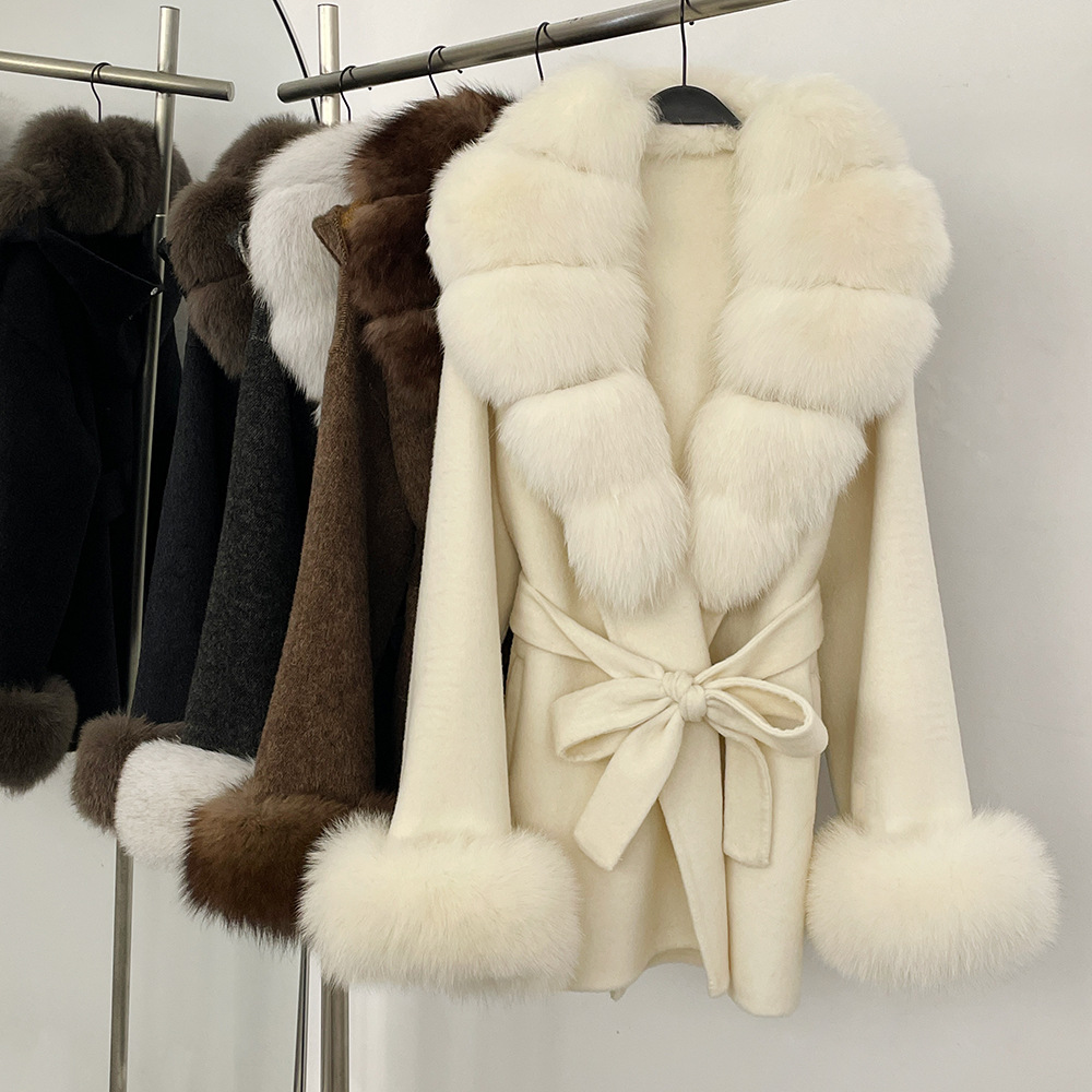 ラシャコート秋冬新作キツネ毛両面ウールコート女性ミディアムコート気質両面コート