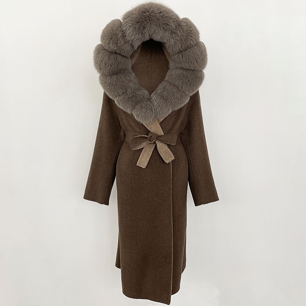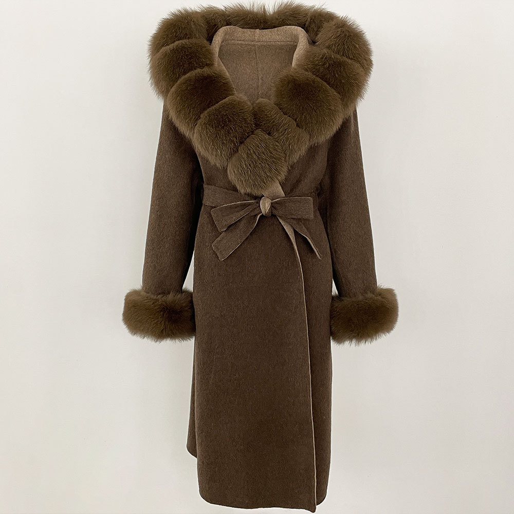 2024秋冬新作両面カシミヤファッションコート女性輸入狐毛襟ロングウールラシャコート