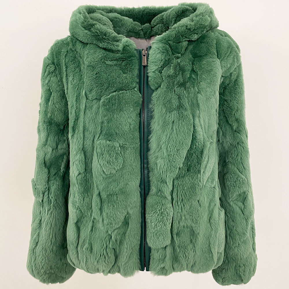 2024新型欧米毛皮一体グリーンベアー短金女性毛皮フードコートカジュアルファッション保温