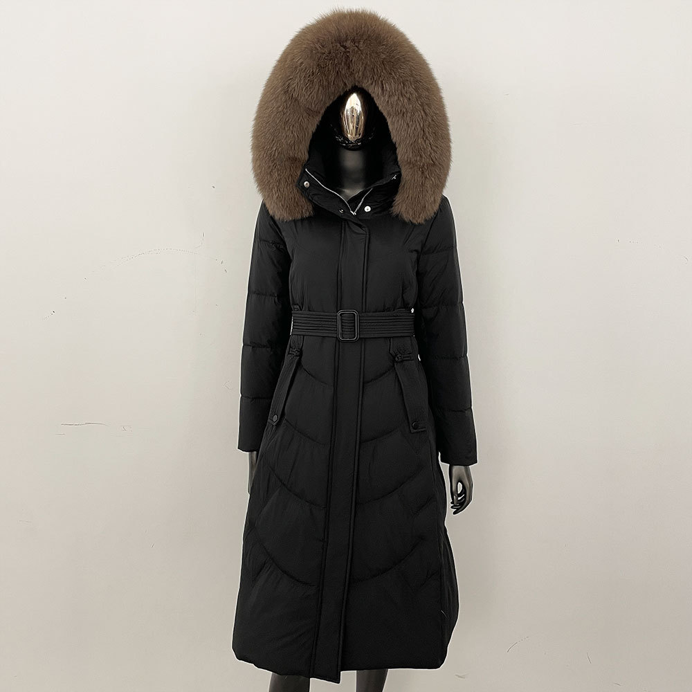 24新型冬ファッションの選択とロングタイプのダウンジャケットの女性は、キツネの毛を厚くして腰を収めて帽子の気質を見せて痩せている