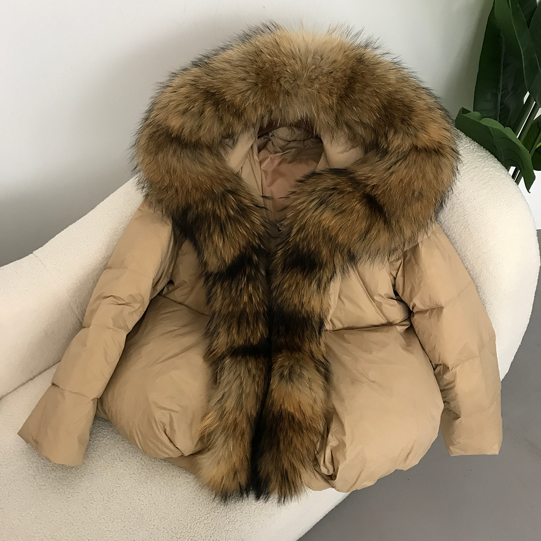 平湖のダウンジャケットの女性23新型の韓国版のファッション的でゆったりしている白鴨の毛の女性の帽子の厚い狐の毛の襟のコート