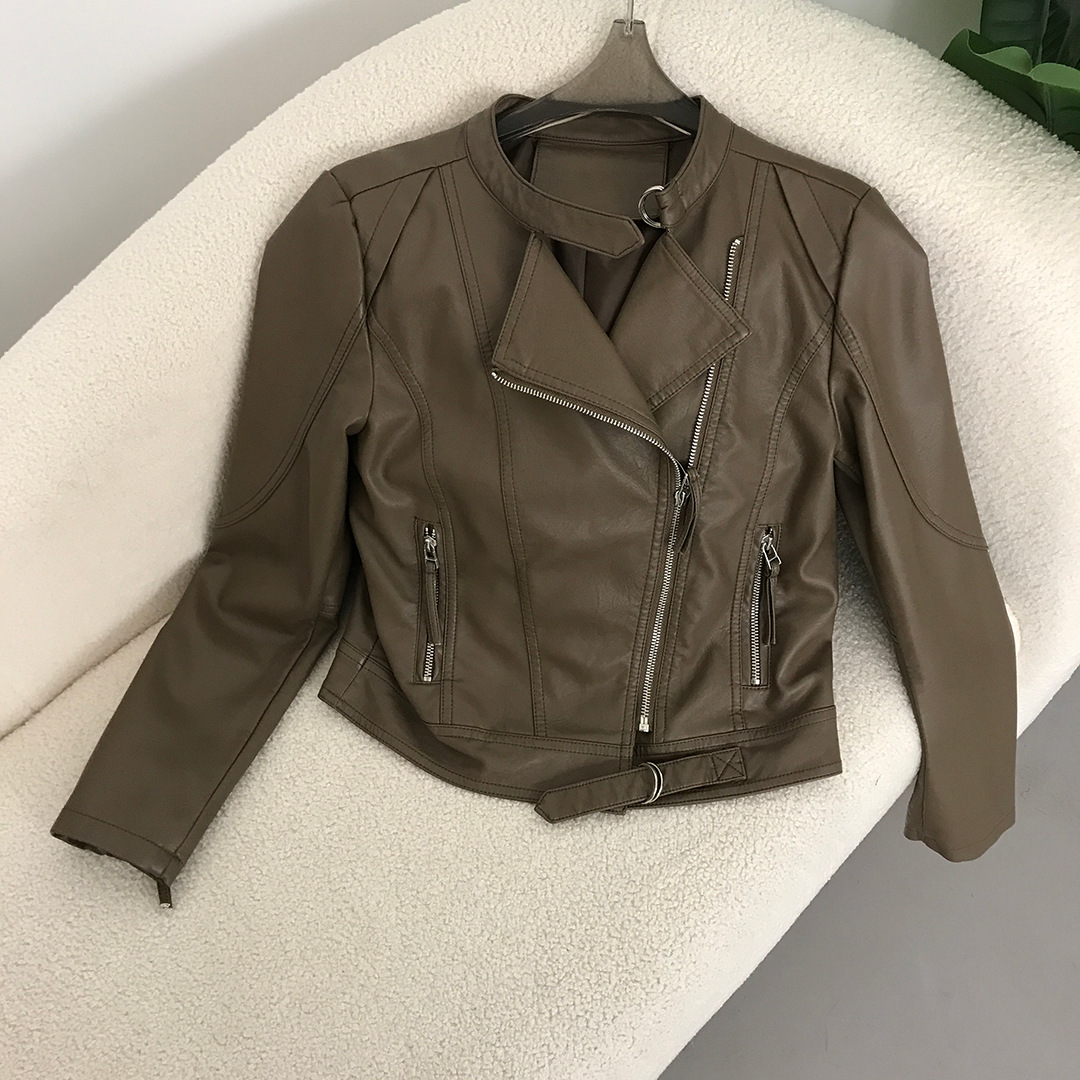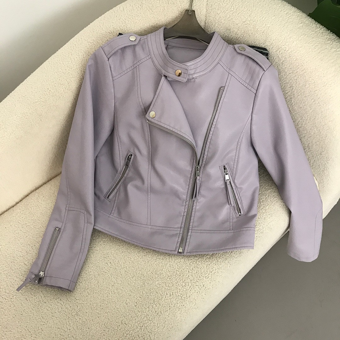 革のコートの女性24春と秋の新型韓国版ファッション修身立襟の短いpu機関車の革のジャケットの外国貿易の婦人服
