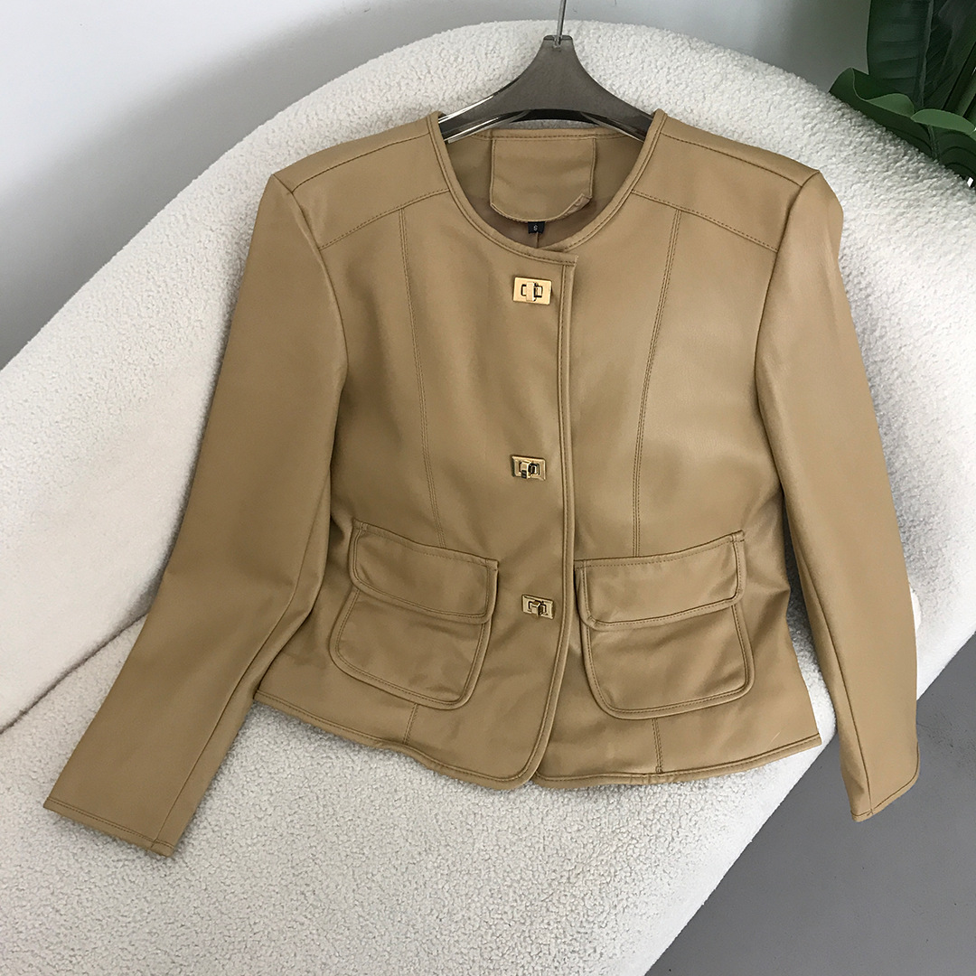 革の服のコートの女性のショートタイプの2024春秋の新型の韓国版のファッションの気質の小さい香りの風のpuの柔らかい皮の機関車の革のジャケット